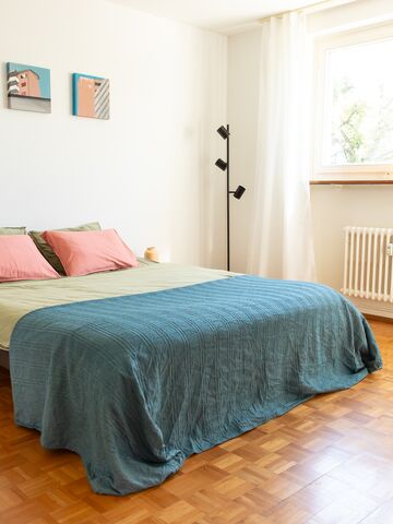 Unsere Gästewohnung liegt im grünen Goldacker-Quartier. Die voll ausgestatteten 3-Zimmer-Wohnunung beherbergt maximal 5 Person.